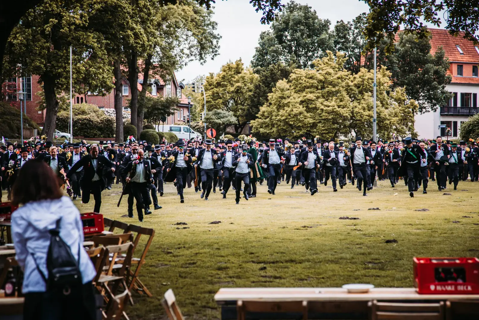 Das jährliche Aufnahmeritual startet dann am Pfingstdienstag um 10 Uhr auf der Herrlichkeit. Nach der Vereidigung vervollständigt die Eintragung in das Mitgliedsbuch der Wildeshauser Schützengilde die Aufnahme. Ein Braunbier zur Stärkung darf dabei nicht fehlen.