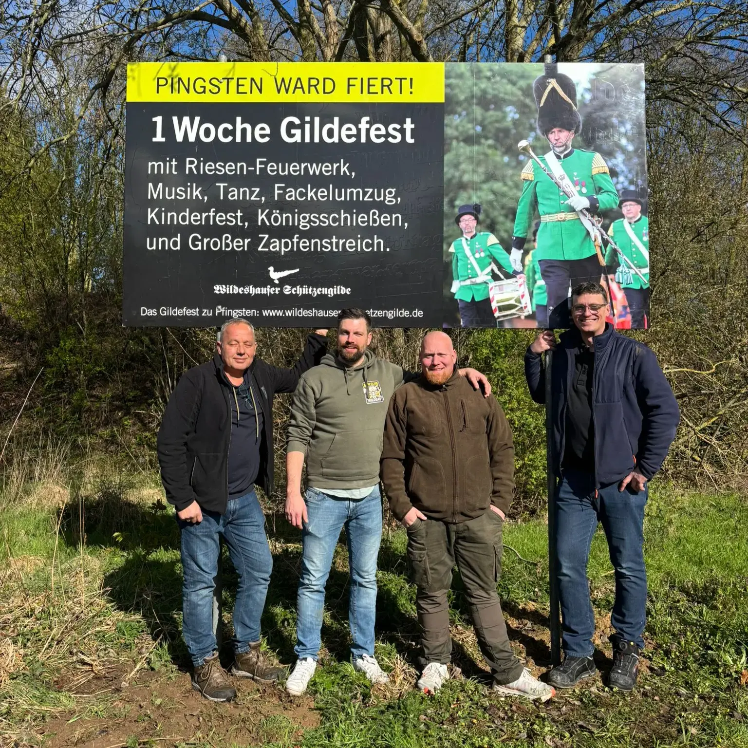 Schaffer Tim Hogeback ist bereits voll in den Vorbereitungen für das diesjährige Gildefest eingespannt. Zusammen mit dem Fähnrich der Wache, Fabian Schnitger, sowie den Wachesoldaten Dirk Böhler und Andreas Sowsnowski, hat er letzte Woche die Werbeschilder für das Gildefest 2026 aufgestellt. Auch die traditionelle Suche nach geeigneten Hülsen für die Schilder verlief dabei problemlos.